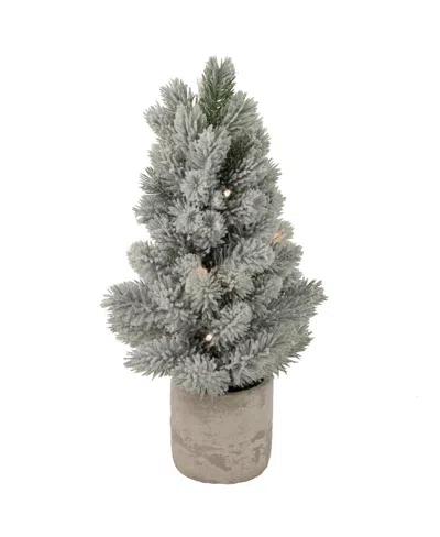 Led Lighted Mini Frosted Pine Christmas Tree In Cement Base, 16" In Green