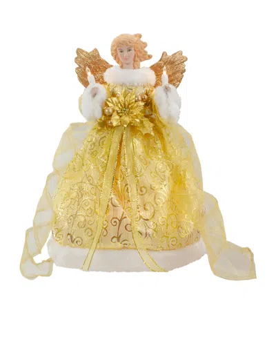 Lighted Angel With Wings Christmas Tree Topper With Clear Lights, 12" In Gold-tone