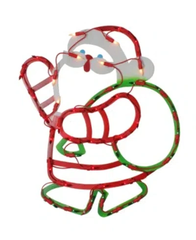 Lighted Santa Claus With Gi Sack Christmas Window Silhouette In Red