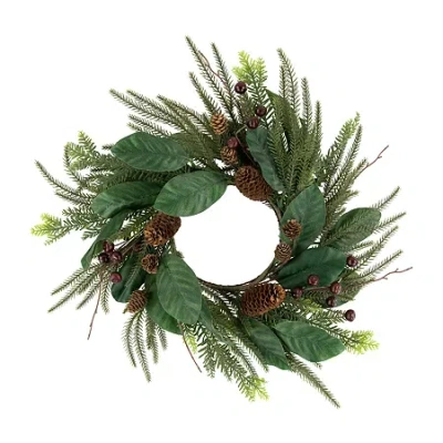 20" Mixed Foliage With Berries Artificial Wreath In Green