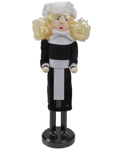 14in Pilgrim Woman Wooden Fall Harvest Thanksgiving Nutcracker In White