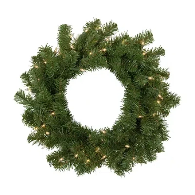 18" Pre Lit Deluxe Dorchester Pine Wreath In Green