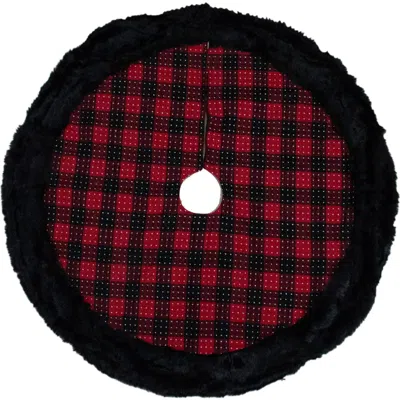 Buffalo Plaid With Polka Dots And Faux Fur Border Christmas Tree Skirt In Black