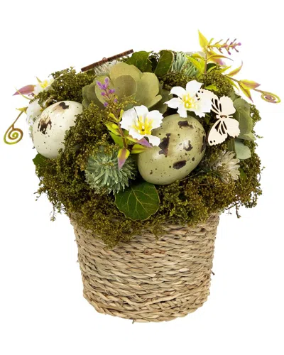 Mixed Floral & Easter Egg Artificial Arrangement In Green