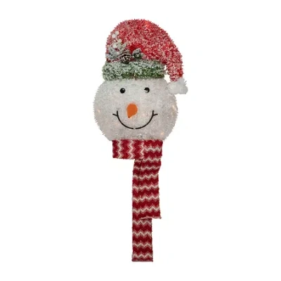 22" Lighted Snowman Wearing A Frosted Hat With Pine Christmas Tree Topper In Multi