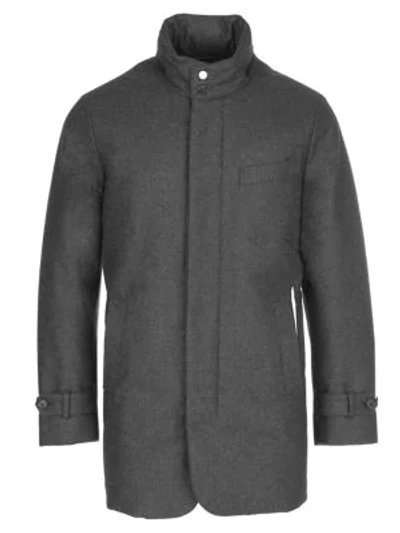 Slim-fit Hooded Wool Down Car Coat In Charcoal