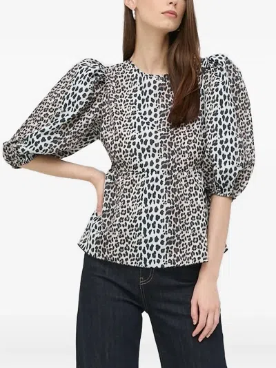 Puff-sleeve Leopard-print Top In White