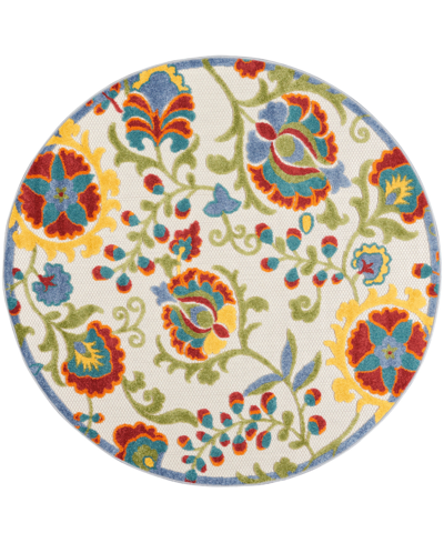 Aloha Alh17 4' X 4' Round Outdoor Area Rug In Ivory