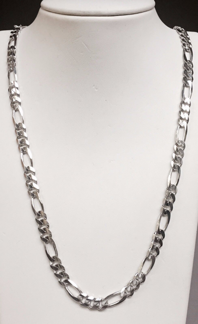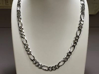 Pre-owned 14k Solid White Gold Mens Figaro Curb Link Chain/necklace 24" 7mm 45 Grams In No Stone
