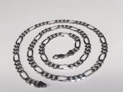 Pre-owned 14k Solid White Gold Mens Figaro Curb Link Chain/necklace 30" 7mm 55 Grams In No Stone