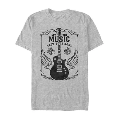 Mens Short Sleeve Let The Music Feed Your Soul Graphic T-shirt In Gray