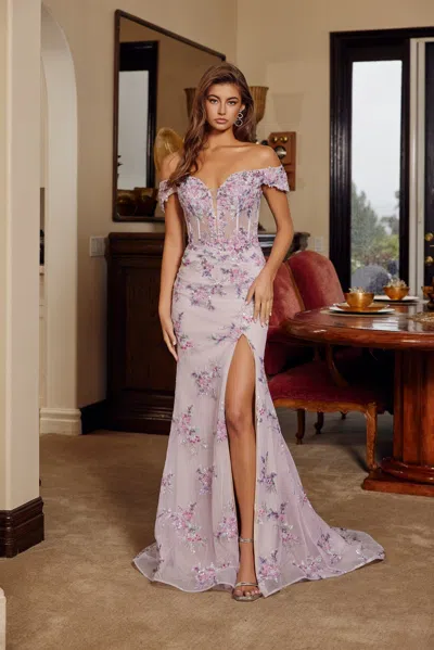 T1489 Long Slit Fitted Formal Prom Dress In Purple