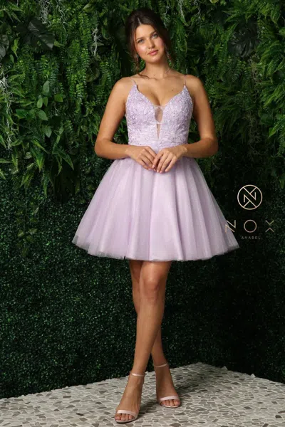 T870 Fitted Short Applique Slit Cocktail Dress In Purple