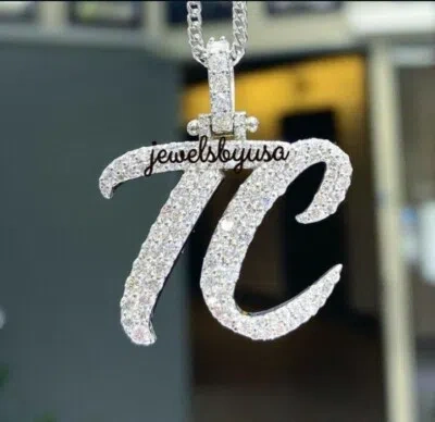 Pre-owned 2ct 100% Tester Passing Moissanite "tc" Custom Letter Initial Pendant 925 Silver In White