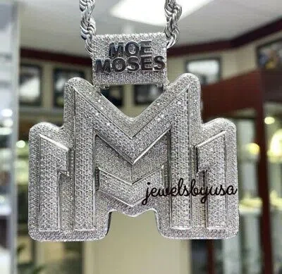 Pre-owned 3.75 Ct 100% Genuine Moissanite Letter Men's Custom Pendant 925 Silver Free Gift In White
