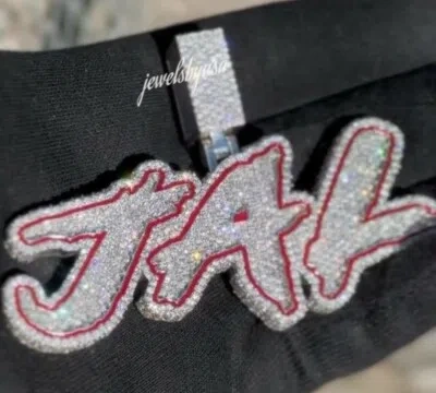 Pre-owned Genuine Moissanite Custom Iced Name With Enamel Pendant 925 Silver Free Chain In White
