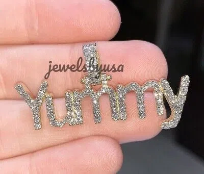 Pre-owned Men's 2ct Round Cut Moissanite Custom Name Small Charm Pendant Real 925 Silver In White