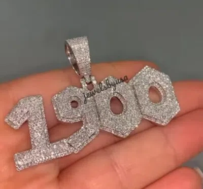 Pre-owned Men's Custom Jewelry 3 Ct Genuine Moissanite Bust Down "1900" Pendant 925 Silver In White