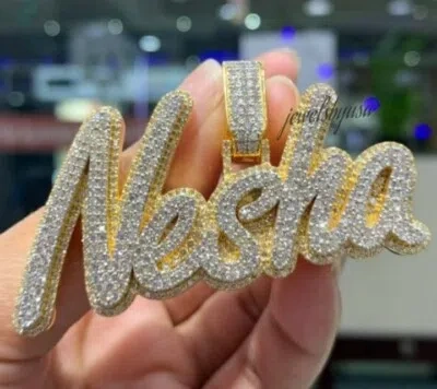 Pre-owned 3 Ct Genuine D/vvs Moissanite Men's Custom Icy Cursive Letter Pendant 925 Silver In White