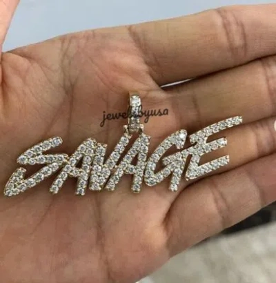 Pre-owned Custom Charm Women's 2.1 Ct 100% Genuine Moissanite "savage" Pendant 925 Silver In White