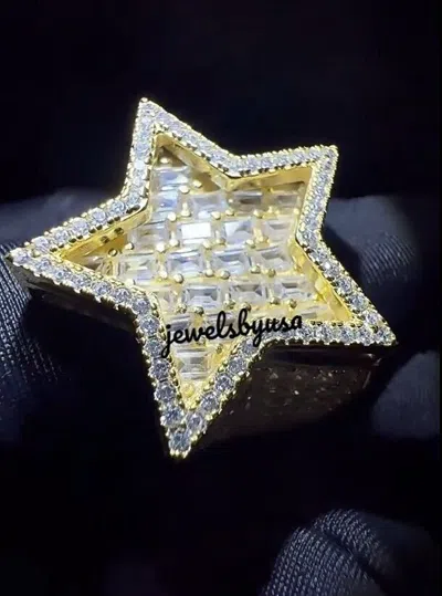 Pre-owned Fully Flooded Iced Men's Baguette Simulated Diamond 3d Star Bold Ring 925 Silver In White