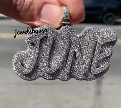Pre-owned Men's Custom Genuine Moissanite Bust Down "june" Pendant 925 Silver In White