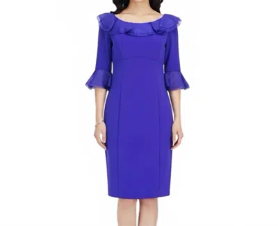 Built In Shapewear Ruffle Pencil Dress In Plum In Blue
