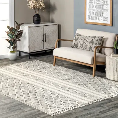 Chenoa Striped Tribal Tassel Area Rug In Gray