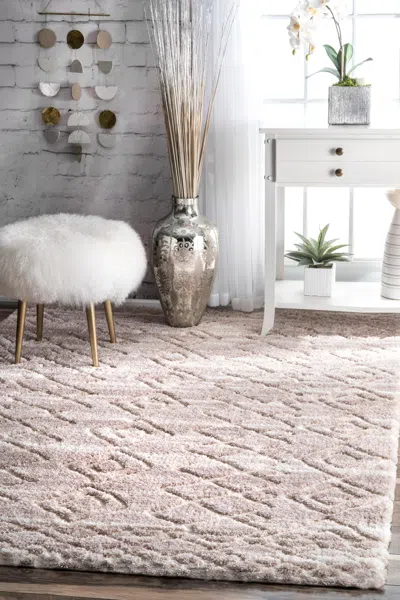 Vinita Moroccan Diamonds Shaggy Area Rug In Neutral
