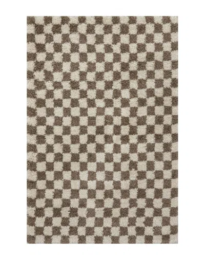 Adelaide Mid-century Checkered Shag Area Rug In Brown