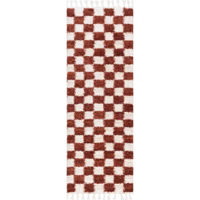 Adelaide Mid-century Checkered Shag Area Rug In Brown