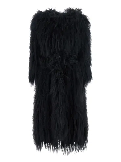Black Fur Coat With Round Neck And Long Sleeves In Fur Woman