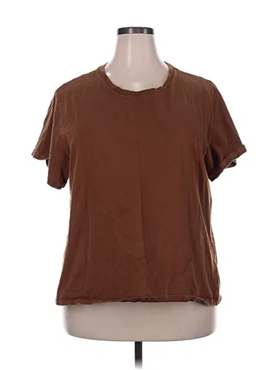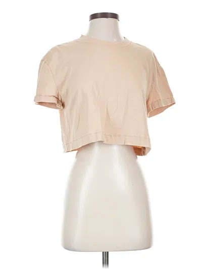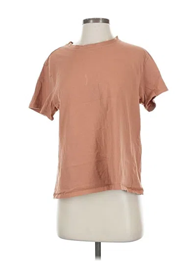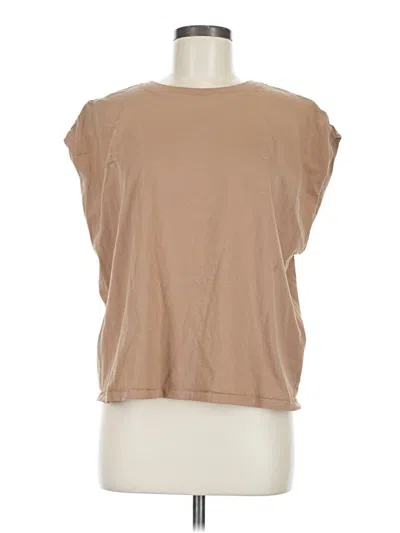 Pre-owned Short Sleeve Top Tan Crew Neck Tops In Brown