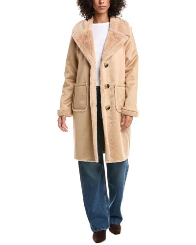 Faux Fur Trim Faux Suede Biker Jacket In Brown