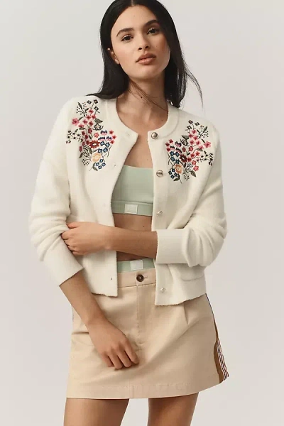 Button-front Embroidered Knit Lady Jacket In White