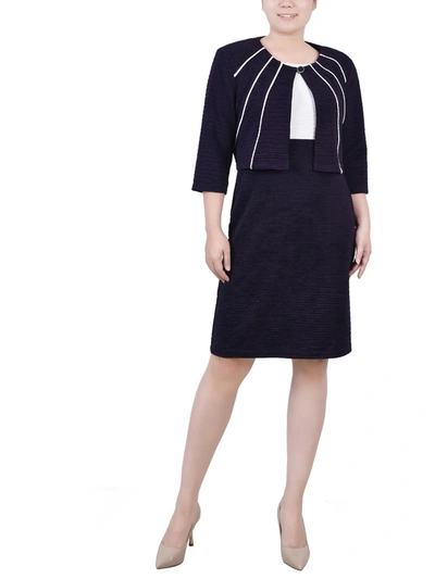 Petite Two Piece Novelty Knit And Lace Dress Set In Blue