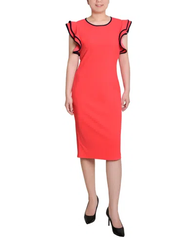 Petite Ruffle Sleeve Dress With Contrast Tipping In Red