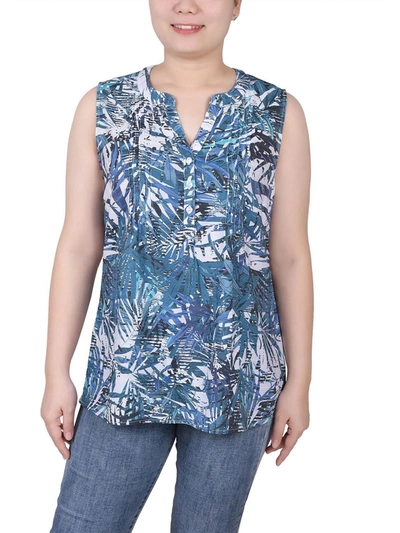 Petites Womens Career Office Blouse In Blue