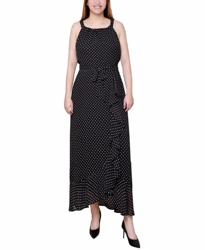 Petite Halter Front Chiffon Maxi Dress In Black Ivory Dot