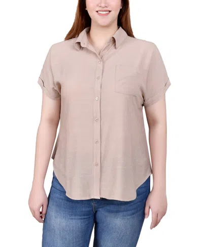 Petite Short Sleeve Scoop Neck Top In Gray