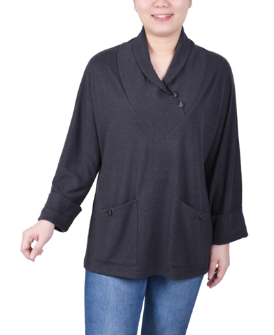 Petite Cuff Sleeve Shawl Collar Top In Dark Charcoal
