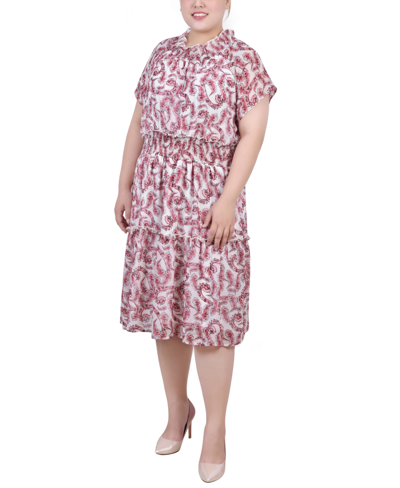 Plus Size Short Sleeve Smocked Waist Dress In Burgundy Paisley Floral
