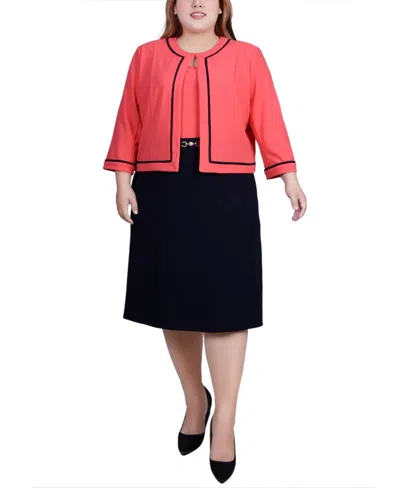 Plus Size 3/4 Sleeve Dress, 2 Piece Set In Navy Coral