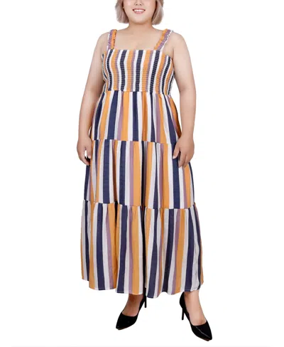 Plus Size Smocked-bodice Tiered Dress In Blue