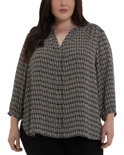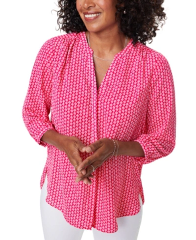 Print Pleat Back Sleeveless Split Neck Blouse In Neutral