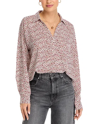 Print Pleat Back Sleeveless Split Neck Blouse In Optic White
