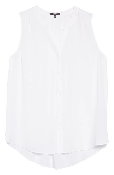 Print Pleat Back Sleeveless Split Neck Blouse In Optic White