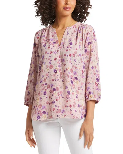 Three Quarter Sleeve Printed Pintucked Back Blouse In Meadowood