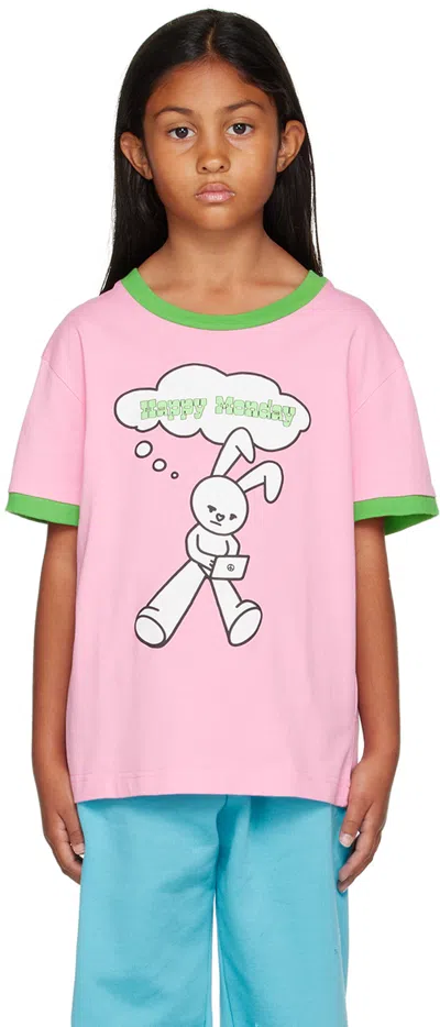 Kids Pink 'happy Monday' T-shirt In Pink/green