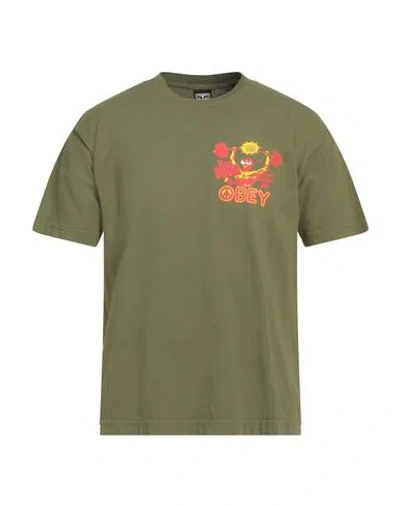 Man T-shirt Military Green Size S Cotton